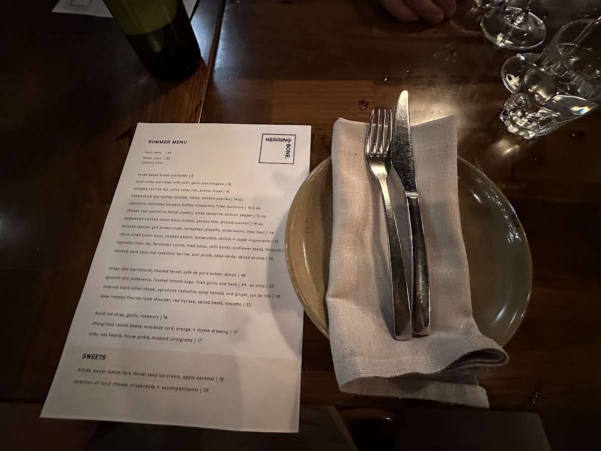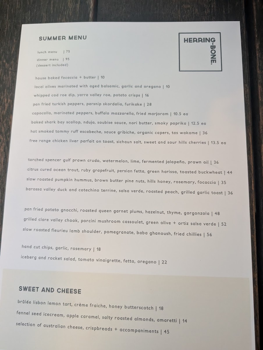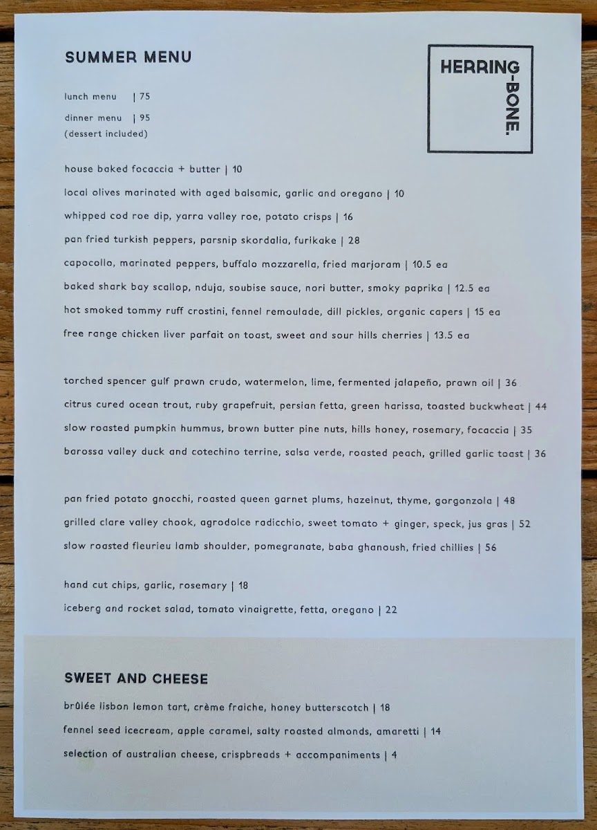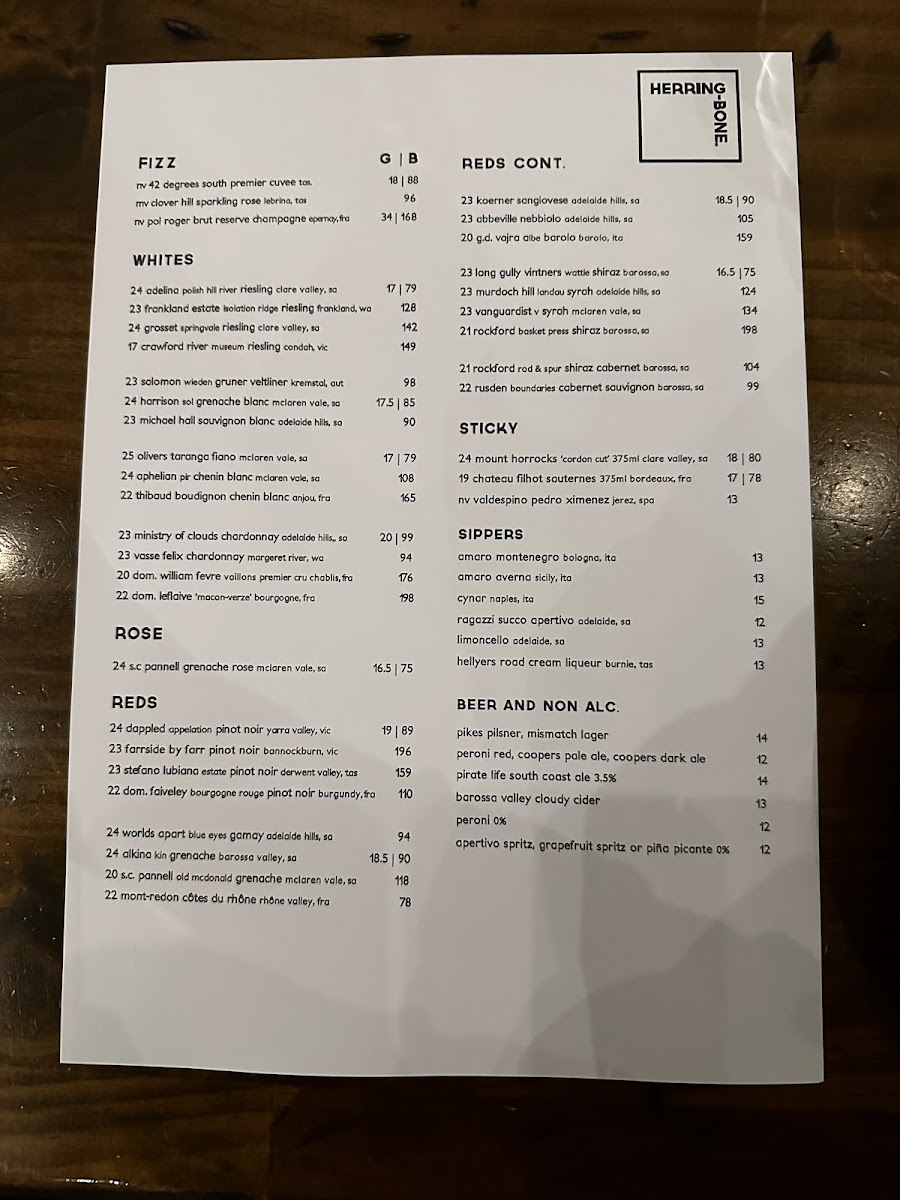 Herringbone’s menu offers a thoughtfully curated selection that blends fresh, seasonal ingredients with approachable, share-friendly dishes. The style leans towards refined yet relaxed dining, where plates balance familiar comforts like slow roasted lamb shoulder and pan-fried potato gnocchi with lighter, vibrant options such as citrus cured ocean trout and radicchio salad.